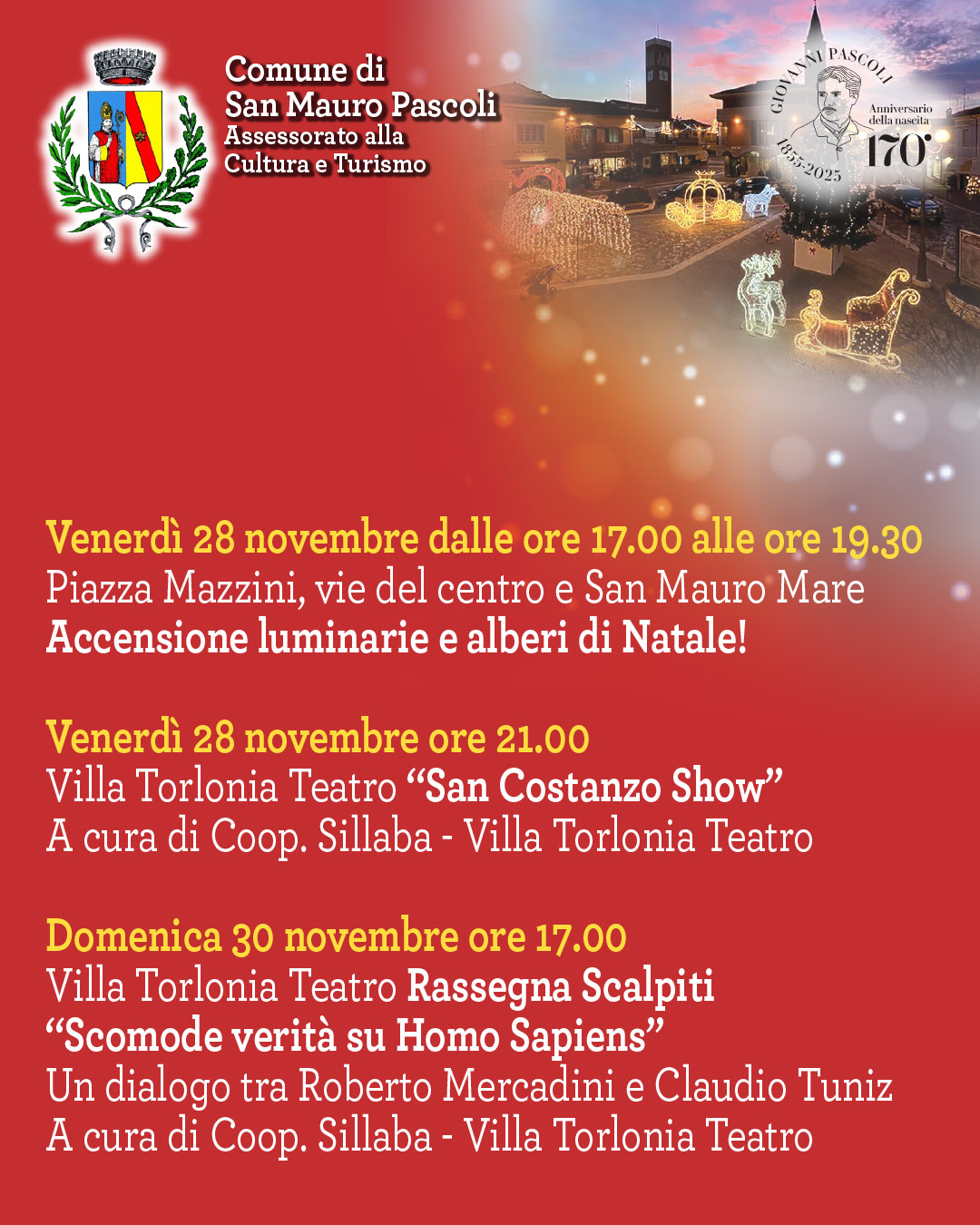 nov 26 2025 SAN MAURO PASCOLI SALUTA IL 2025 Tutti gli appuntamenti dal 28 al 30 dicembre 2025 da venerdì 28 novembre 2025 - a domenica 30 novembre 2025