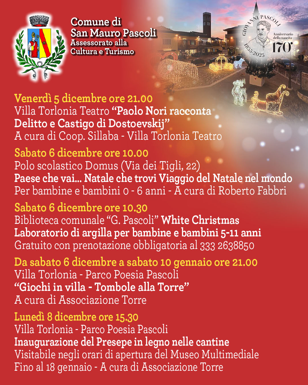 nov 26 2025 SAN MAURO PASCOLI SALUTA IL 2025 Tutti gli appuntamenti dall' 8 all' 11 dicembre 2025 da mercoledì 10 dicembre 2025 - a giovedì 11 dicembre 2025