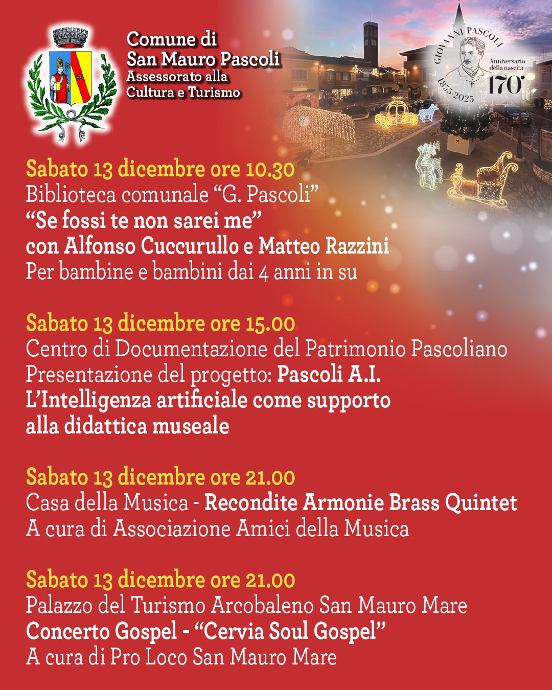 nov 26 2025 SAN MAURO PASCOLI SALUTA IL 2025 Tutti gli appuntamenti di sabato 13 dicembre 2025 sabato 13 dicembre 2025