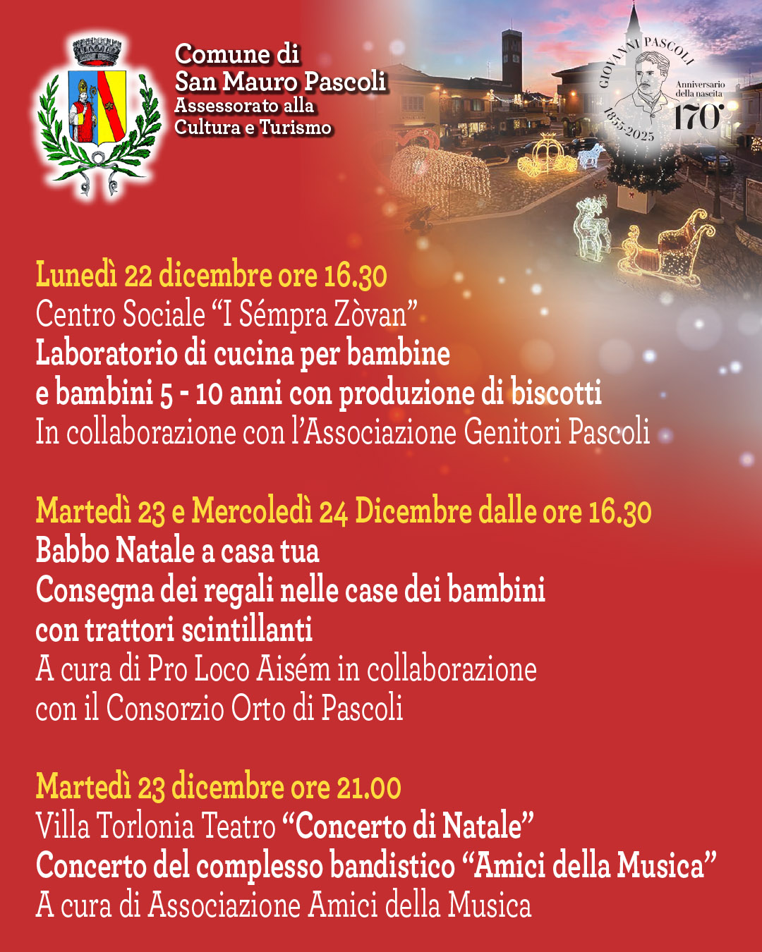 nov 26 2025 SAN MAURO PASCOLI SALUTA IL 2025 Tutti gli appuntamenti il 22 e 23 dicembre 2025 da lunedì 22 dicembre 2025 - a martedì 23 dicembre 2025