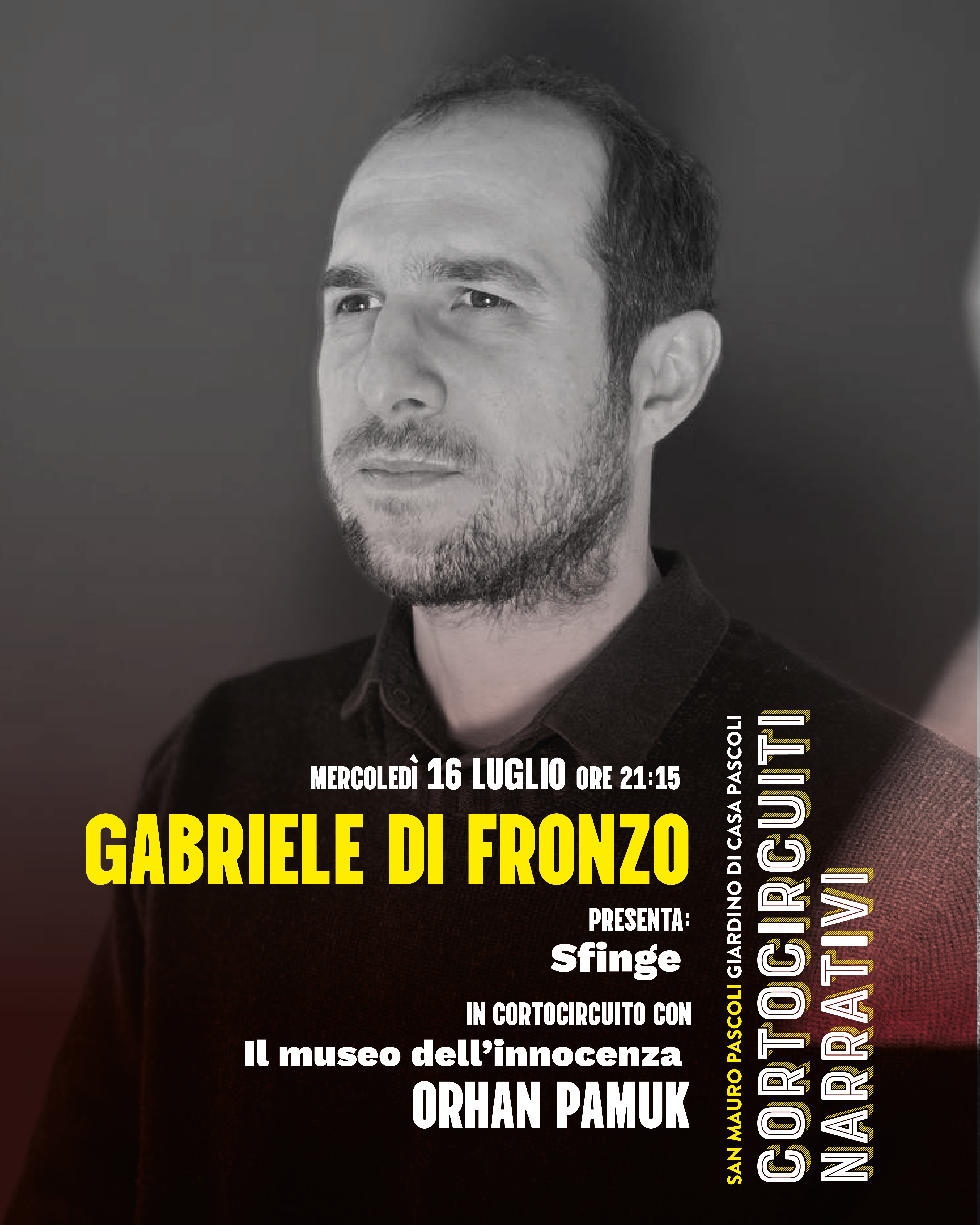 Gabriele Di Fronzo presenta “Sfinge”, un libro scritto con una sapienza artigianale antica. Un cortocircuito difficile, ma che ha trovato una scintilla con “Il Museo dell’Innocenza” del Premio Nobel Orhan Pamuk. Solo a fine incontro si scoprirà il perché, ma di certo la prima cosa che salta all’occhio è la raffinatezza di due scritture che non si rassegnano alla paratassi: le vicende che raccontano hanno bisogno di un respiro più ampio.