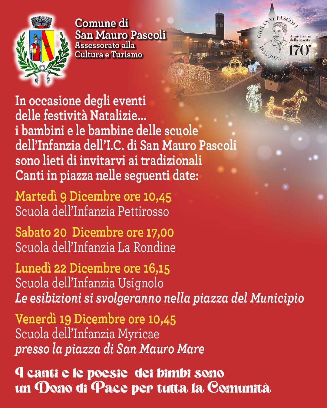 Tutti gli appuntamenti con i canti natalizi delle bambine e dei bambini delle scuole di San Mauro Pascoli e Mare